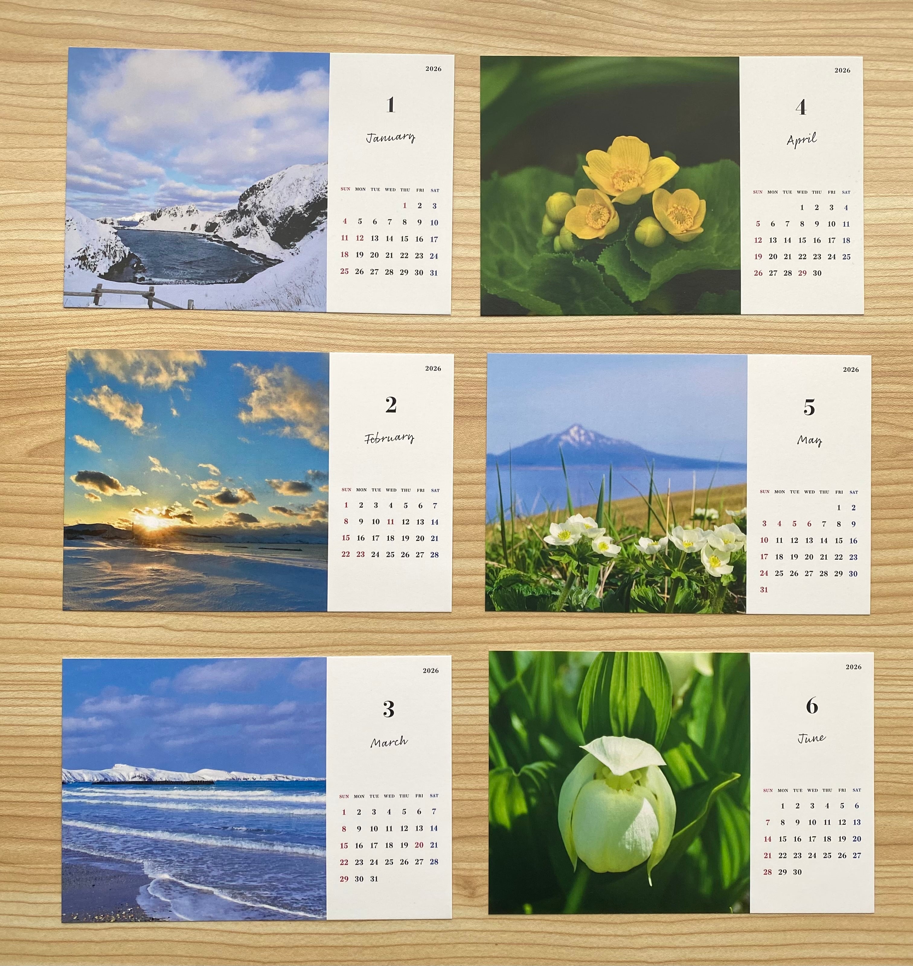 礼文島の何気ない景色や花の写真が楽しめるカレンダーです。シンプルで日常に溶け込むような雰囲気の写真で構成しています。